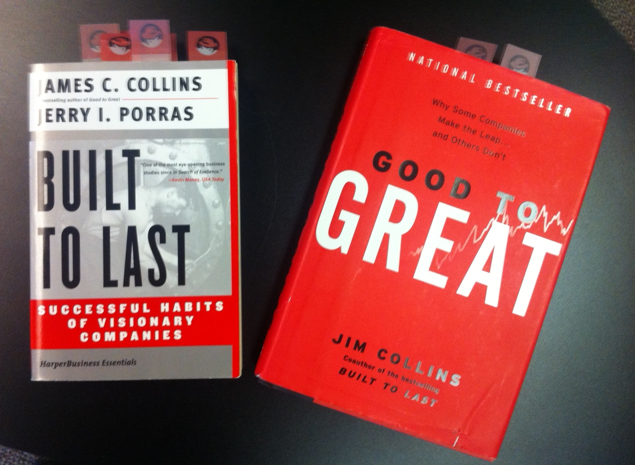Check out this picture of my copies of Built to Last and Good to Great, with little Red Hat Shadowman stickies marking the key sections I refer to the most. (I’m such a nerd.)
