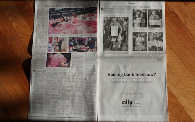 Now, with a growing movement increasingly dissatisfied with the financial industry, it is a perfect time for them to dial up the volume with a few well-placed advertisements. And with a pitch-perfect, authentically-articulated message, this particular ad not only differentiates Ally from its banking competition, it serves as an olive branch—one bank willing to break with its brethren and show sympathy to the pain being expressed by a growing movement.