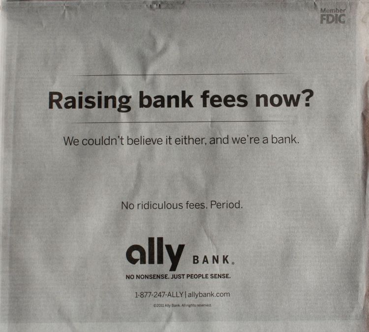 I mean, come on. Are the banks really arrogant enough to believe it is OK for them to screw the very consumers who bailed them out and have seen none of the benefits from that investment trickle back to them? Ally Bank doesn’t think so.