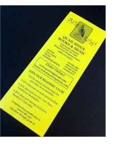 So I’m standing there at Quail Ridge Books, and I see the cashier reach for a yellow bookmark that I’m positive is going to be the entry point to Quail Ridge’s version of the membership club speech. Instead, the cashier simply says, “We have a membership program called the Reader’s Club. I’m going to put this bookmark in your book and if you like, you can look at the benefits there.”
